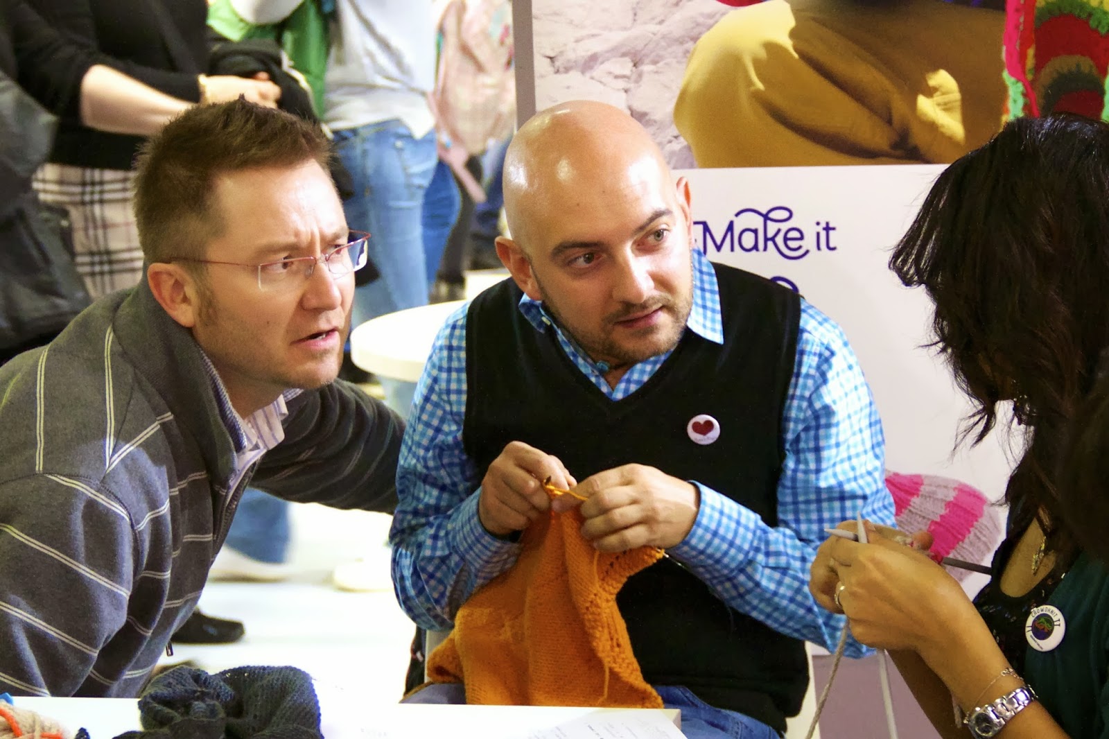 E poi questa è stat l'edizione della maglia declinata al maschile!Erano con me anche alcuni del gruppo FB dei Magliuomini: Fabio, Alessandro ed Elbert! Si sono fatti riconoscere sventolando i ferri circolari e si sono buttati a sferruzzare, attirando le attenzioni della folla.